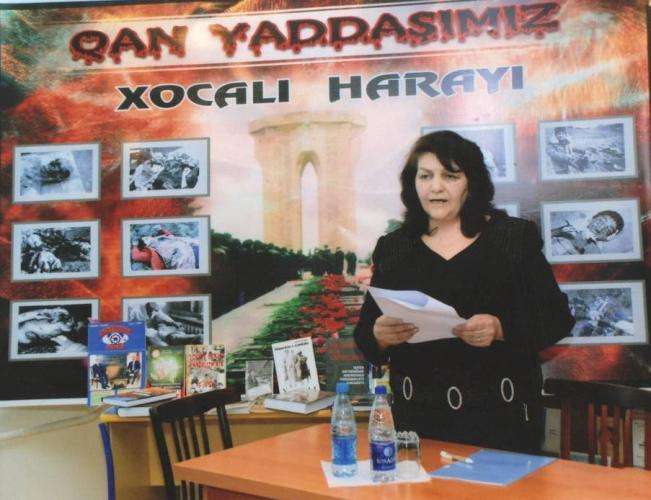 Əsaslı Kitabxananın əməkdaşı Təranə İsmayılova şair-yazıçı, əməkdar jurnalist Eldar İsmayılın "Xocalının dərdi haray, ay haray" adlı şeirini oxudu.