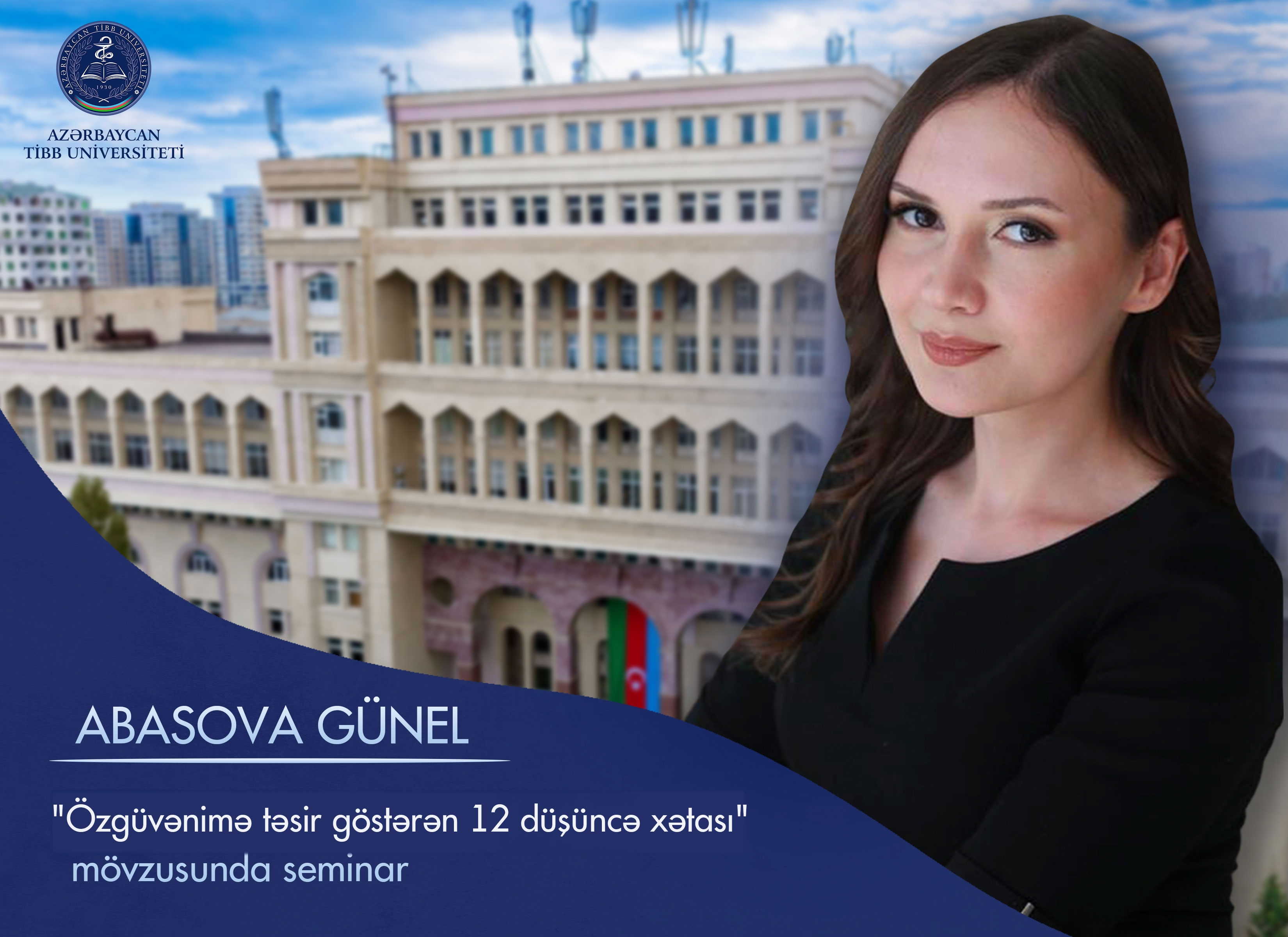 Azərbaycan Tibb Universitetinin Tədris Terapevtik Klinikasında klinik psixoloq Abasova Günel tərəfindən "Özgüvənimə təsir göstərən 12 düşüncə xətası" mövzusunda seminar baş tutacaq.