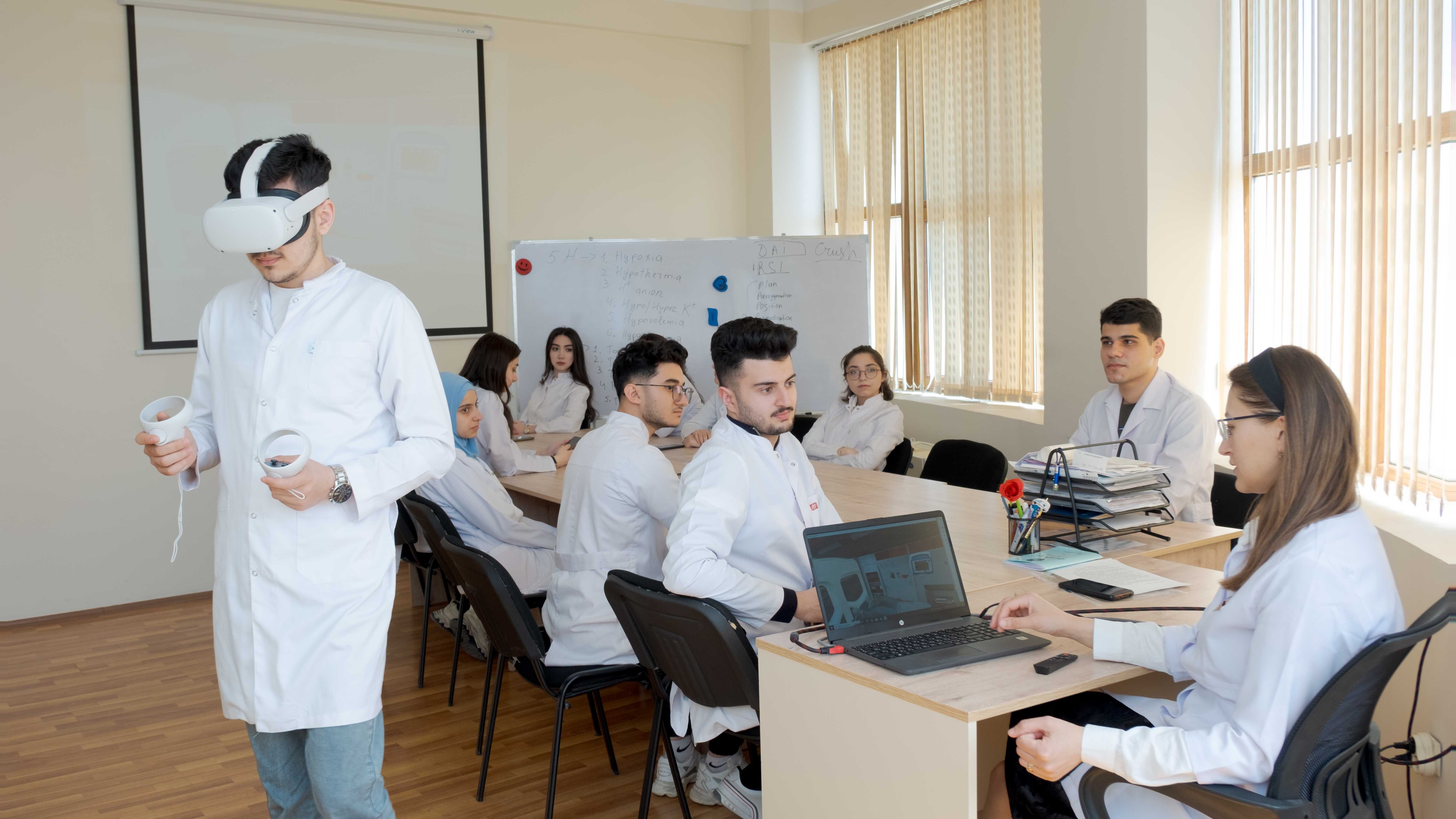 Kafedrada VR-ın (virtual reality) tətbiqi tələbələrin kritik situasiyalara aid biliklərini, bacarıqlarını, ən əsası isə, davranışlarını inkişaf etdirməyə və qiymətləndirməyə xidmət edir. VR simulyasiya dərsləri ilə tələbələr müxtəlif ssenarilər üzrə (multitravma, pediatrik sinkop, septik şok, döş qəfəsi ağrısı və s.) baş verə biləcək ölümün qarşısını alır, xəstəni stabilləşdirir və xəstə menecmentini həyata keçirirlər.