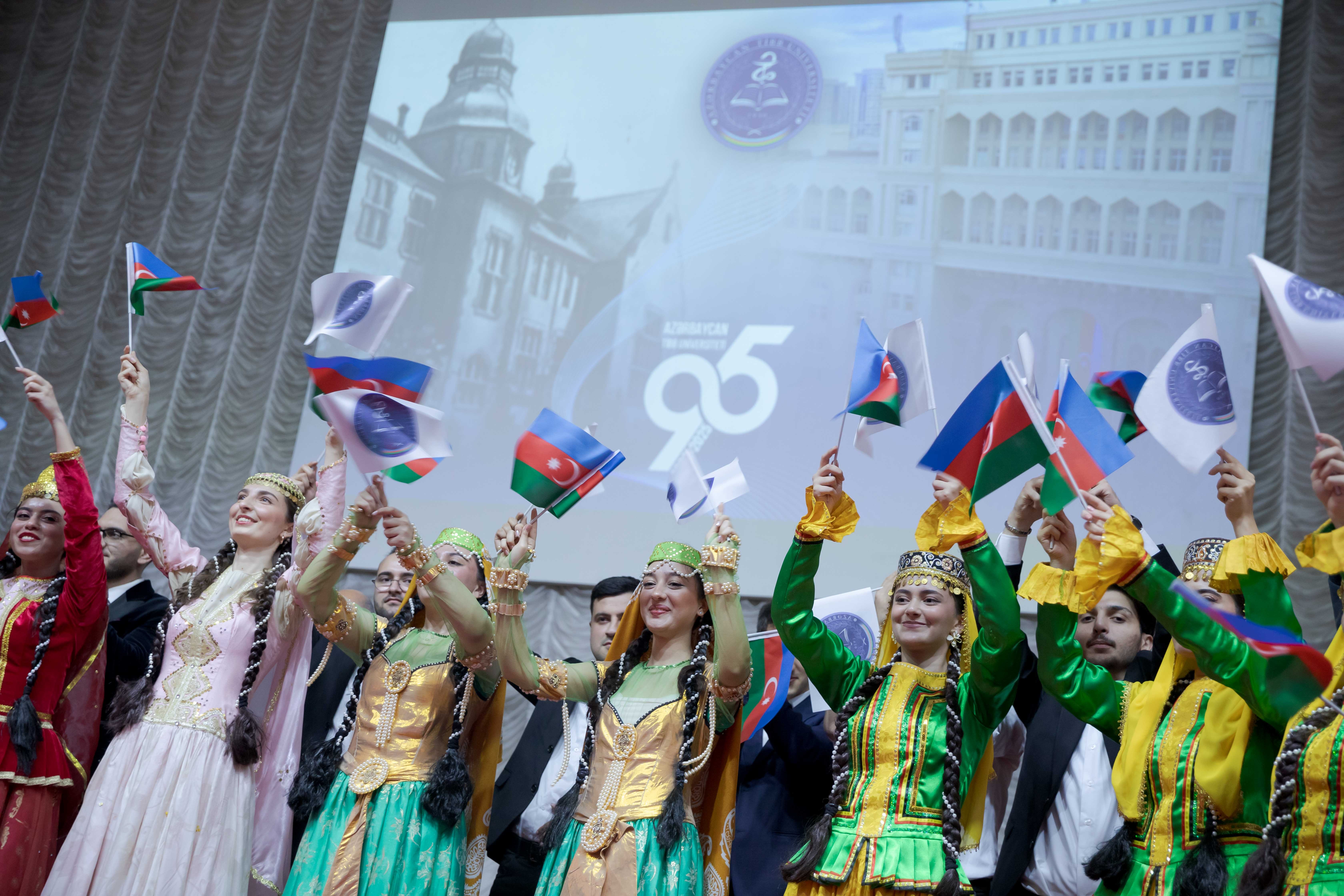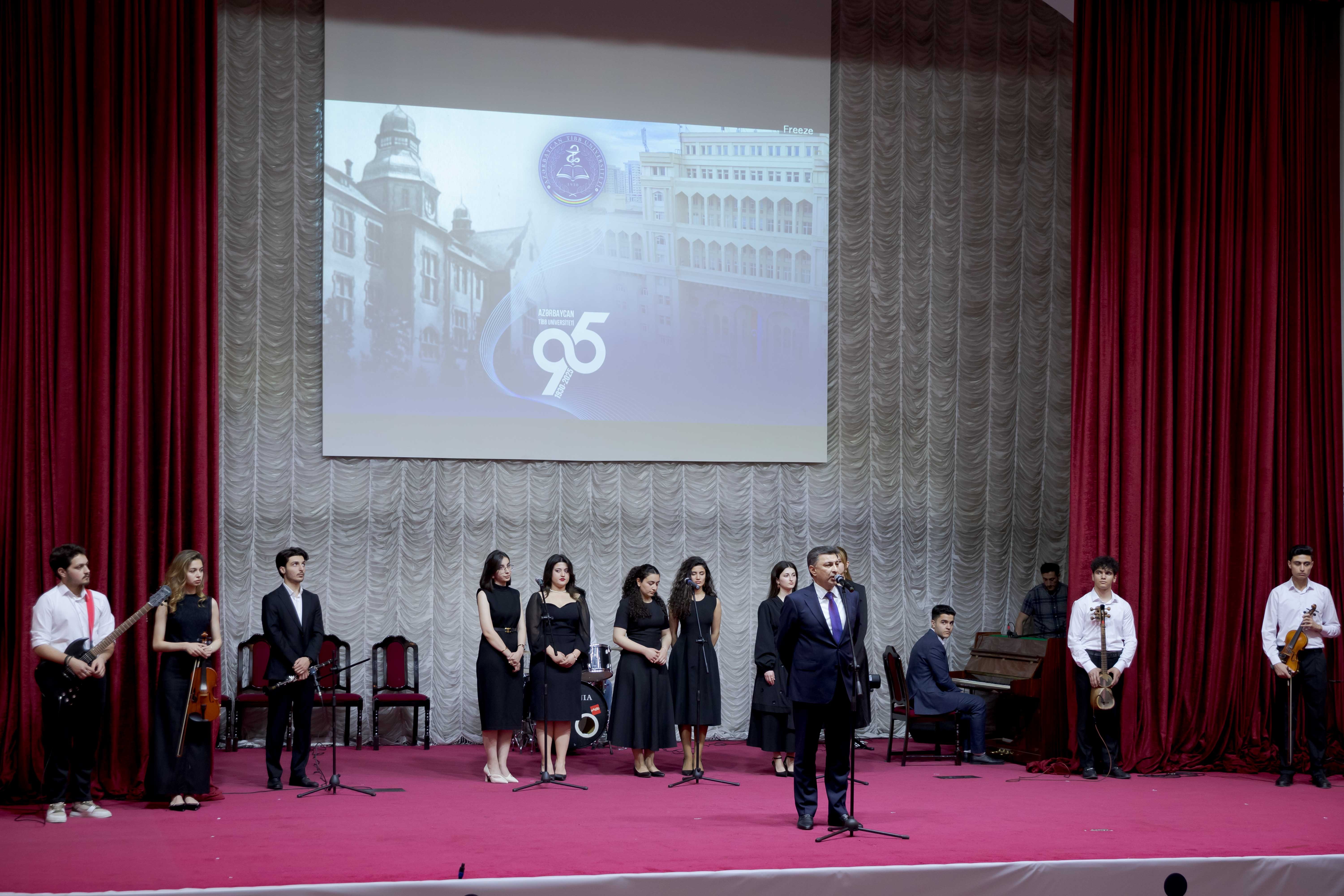Ötən 95 ildə universitetimizdə on minlərlə gəncin həkimlik peşəsinə yiyələndiyi qeyd olunub və xalqımızın sağlamlığı keşiyində dayananların böyük hörmətə layiq olduqları vurğulanıb. Bundan sonra pianoda Samir Səfərov və xorda “Şəfa” ansamblının xanım üzvlərinin müşayiəti ilə MPF-nin 6-cı kurs tələbəsi Ülkər Gülmalıyeva “Ağ xalatlı həkimlər” mahnısı ifa edib.
