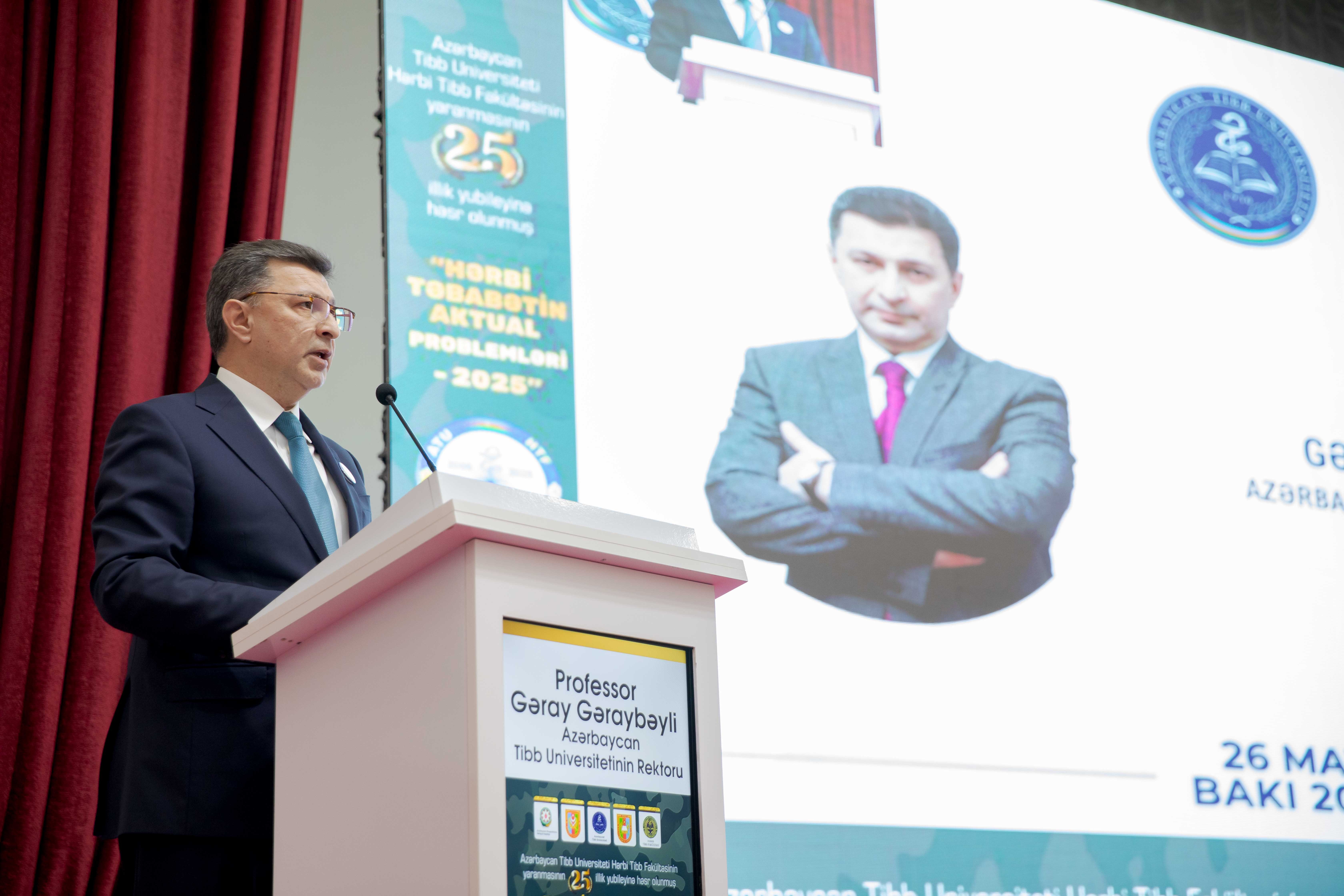 Mayın 26-da Azərbaycan Tibb Universitetinin Hərbi tibb fakültəsinin yaranmasının 25 illik yubileyinə həsr olunmuş “Hərbi təbabətin aktual problemləri-2025” adlı elmi-praktik konfrans keçirilib.