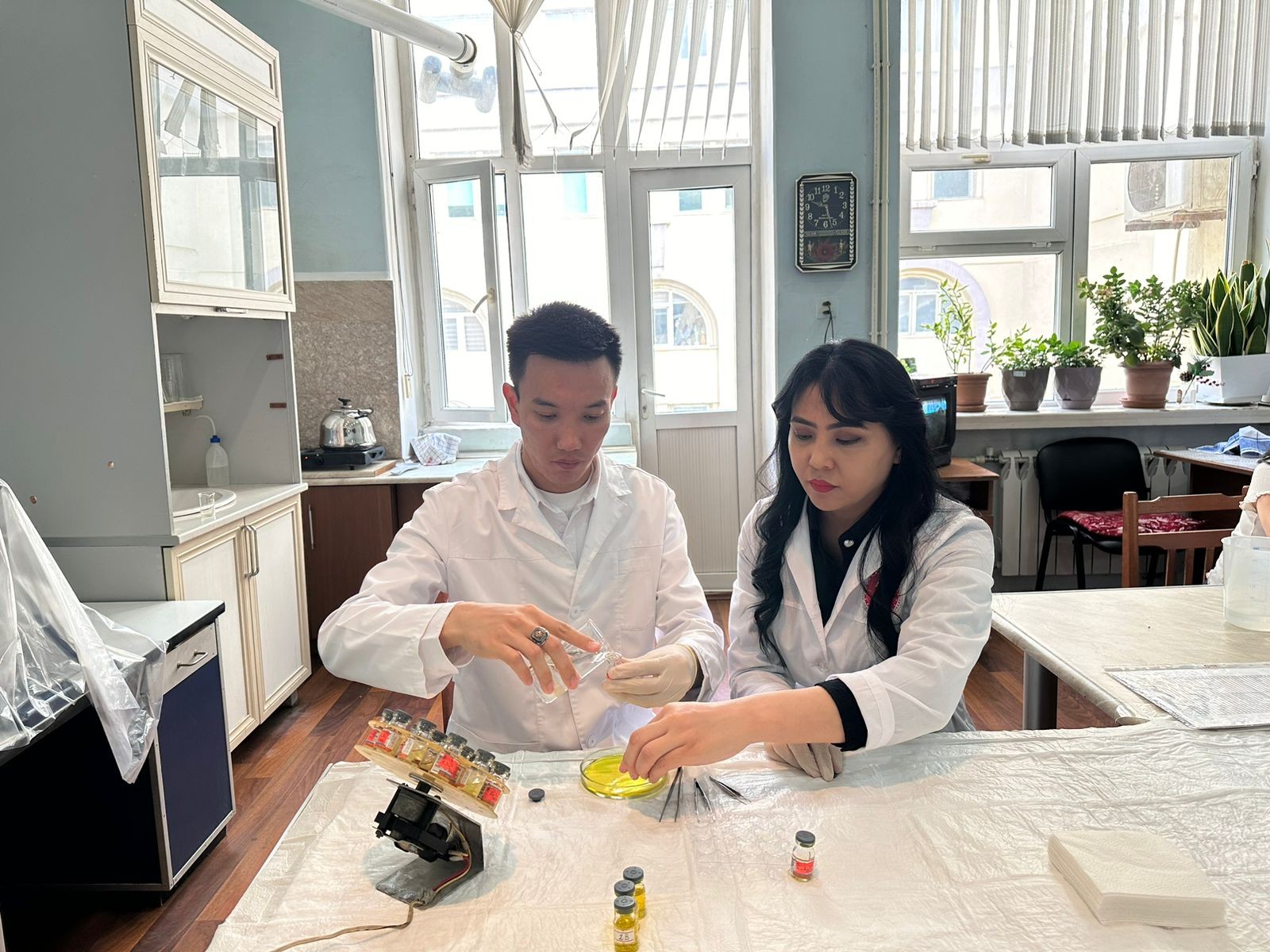 Səfər müddətində J.Komekbay kafedrada mühazirə oxuyub, tədris proqramları ətrafında geniş müzakirələr aparıb və elmi təcrübələrini bölüşüb. Doktorantlar Elektron mikroskopiya şöbəsində öz doktorluq proqramı üzrə yerinə yetirdikləri elmi tədqiqatlarına aid olan materiallar əsasında nümunələrdən araldit-epon bloklarının hazırlanması, yarım (1 mkm) və ultranazik (50-70 nm) kəsiklərin alınması, boyanması və TEM vasitəsilə çəkilməsi prosesini tam şəkildə mənimsəyiblər. Sonda hər üç qonağa sertifikatlar verilib.